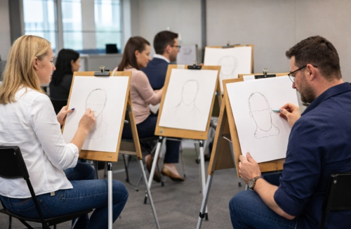 In diesem Workshop entdecken Ihre Mitarbeiter spielerisch die Grundlagen des Porträt- und Karikaturzeichnens. Ohne Vorkenntnisse – und mit überraschend starken Ergebnissen.